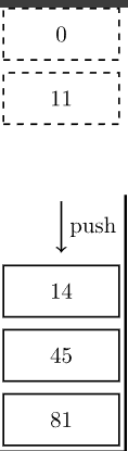 如上:一个 {0,11,45,81}的单调栈,如果要插入元素 14